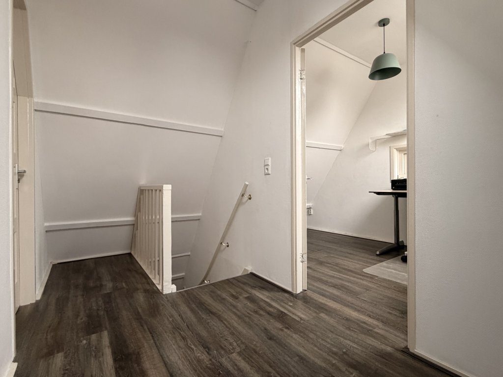 Ruime overloop met toegang tot de vijfde (slaap)kamer, die ook uitstekend geschikt is als werk- of hobbyruimte.