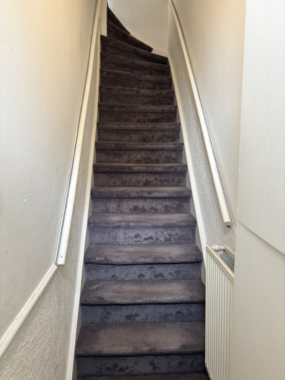 De tweede verdieping bereikt u via de volgende trap en vanuit de hal heeft u toegang tot de tweede keuken van de woning, 2 slaapkamers en de tweede badkamer.
