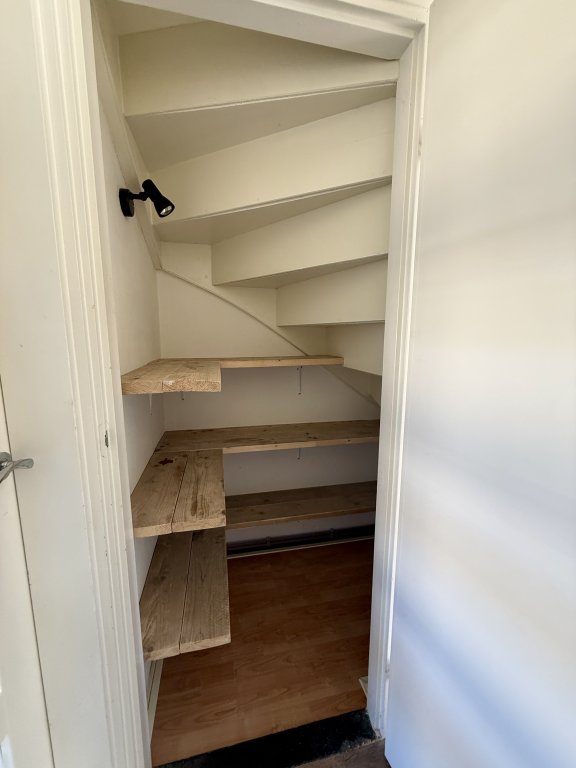 De zolderverdieping biedt een volwaardige extra slaapkamer en beschikt tevens over praktische bergruimte. Daarnaast is er een aparte opslagruimte met aansluitingen voor wasmachine en droger.