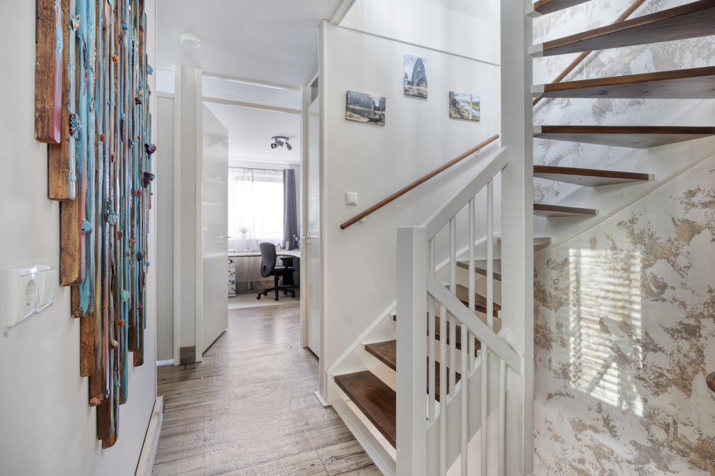 De woning is licht, ruim en modern ingericht en wordt volledig gemeubileerd verhuurd. De woning heeft 3 verdiepingen. Eén van de kamers is ingericht als sportkamer, ideaal voor thuis trainen of yoga. Daarnaast beschikt de woning over een heerlijke tuin én een dakterras, waardoor je op elk moment van de dag kunt genieten van buitenruimte.