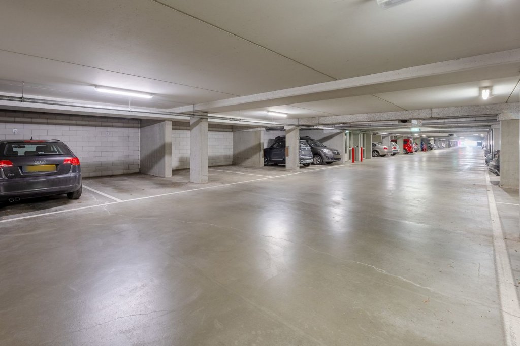 Eigen parkeerplaats en externe berging (9 m²) in het souterrain, bereikbaar per lift