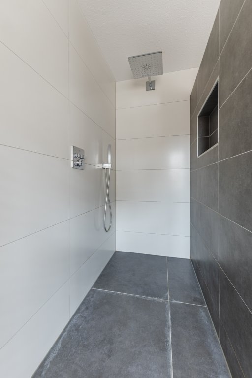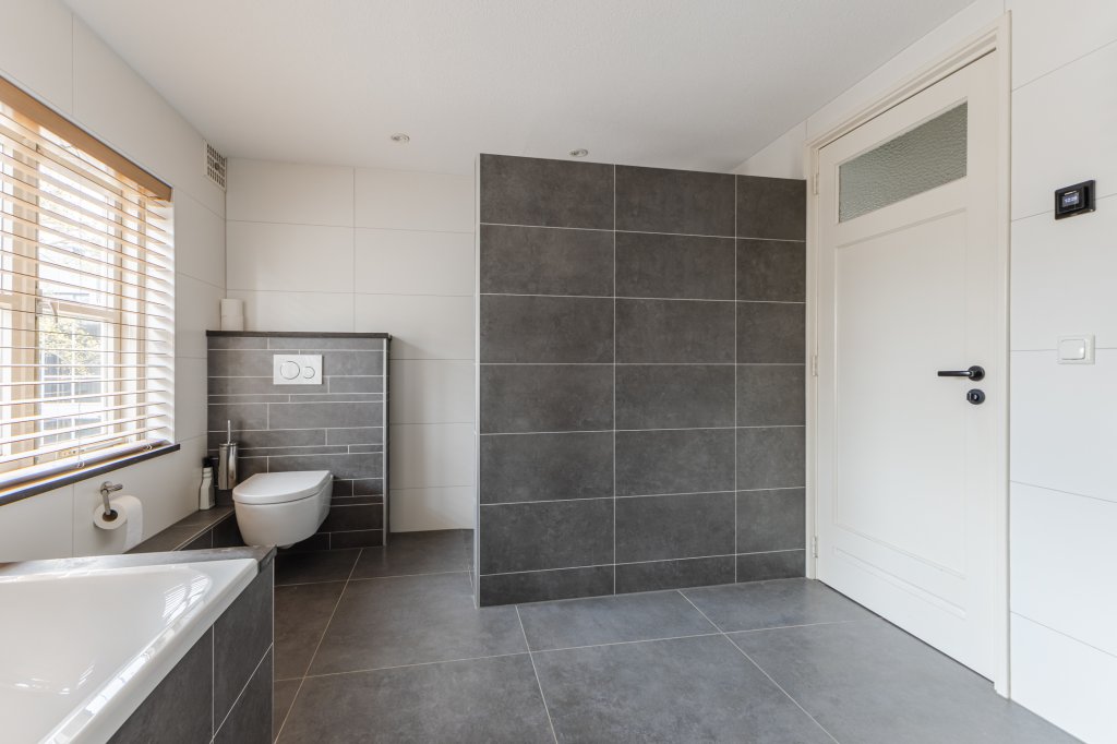 De badkamer is compleet uitgevoerd met zowel een ligbad als een aparte douche, wat zorgt voor extra comfort.