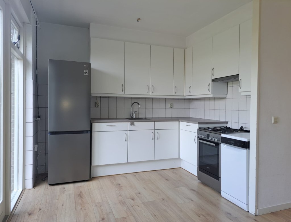 Hal met meterkast. Ruime woonkamer met open keuken in hoekopstelling voorzien van een vrijstaande vaatwasser, gasfornuis met oven en een grote koelvriescombinatie. Aan de voorzijde bevindt zich de ruimte voor de zithoek met vrij uitzicht op het plantsoen en woonerf. Aan de achterzijde van de woning heeft u via het grote raampartij met tuindeuren leuk zicht op de achtertuin. In het midden van ed begane grond bevindt zich de hal met toilet, praktische gangkast en de trapopgang naar de eerste verdieping.
