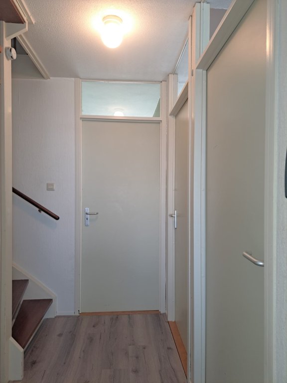 Overloop met bergruimte en de opstelling van de CV-ketel en de wasmachine. Verder is hier een vierde slaapkamer met Velux-raam.