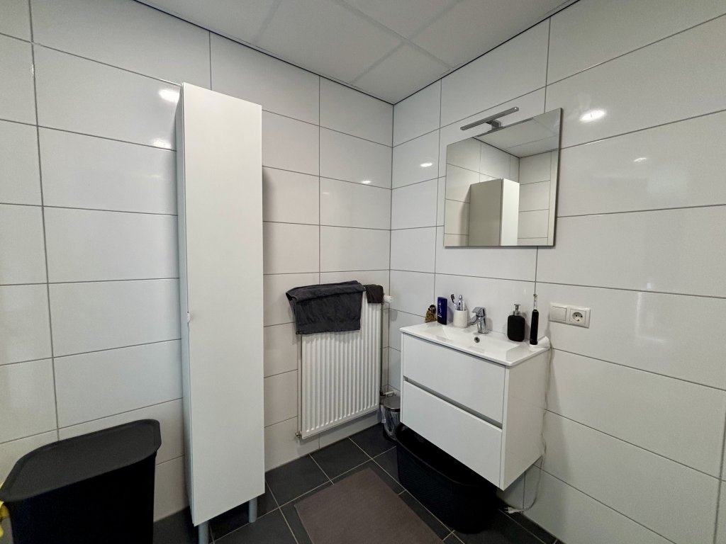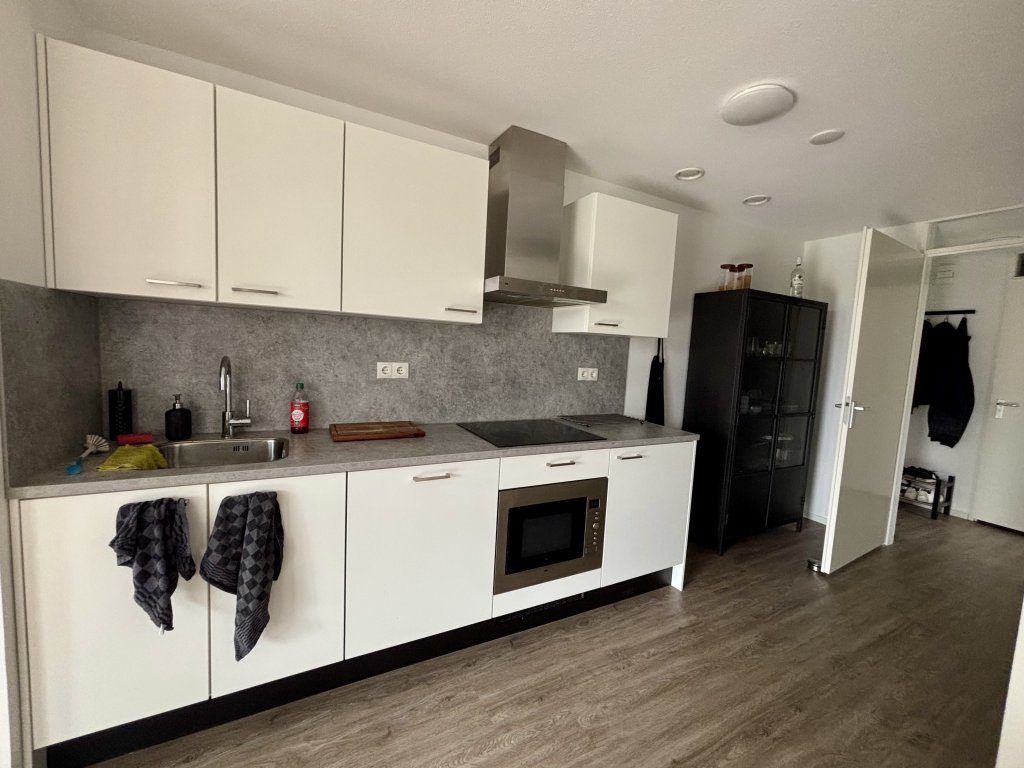 Indeling: entree, hal, toilet, wasruimte, ruime woonkamer met open keuken. De keuken is voorzien van inductie, afzuigkap, combioven, koelkast, vriezer, vaatwasmachine. Ruime slaapkamer, badkamer voorziene van inloopdouche, toilet en wastafel.