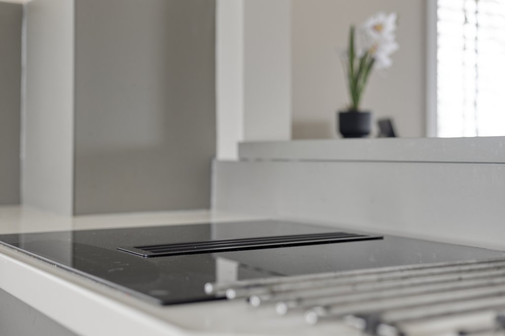 De villa heeft een doordachte en speelse indeling verdeeld over meerdere niveaus. Bij binnenkomst tref je een royale en lichte woonkamer met grote raampartijen en fraai zicht op het water. De open keuken is voorzien van moderne inbouwapparatuur en biedt directe toegang tot het terras aan het water. De begane grond beschikt daarnaast over een slaapkamer/kantoorruimte, ideaal voor logees of thuiswerken.