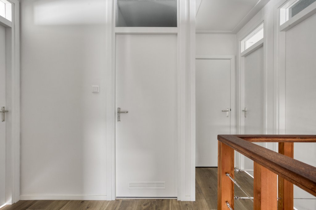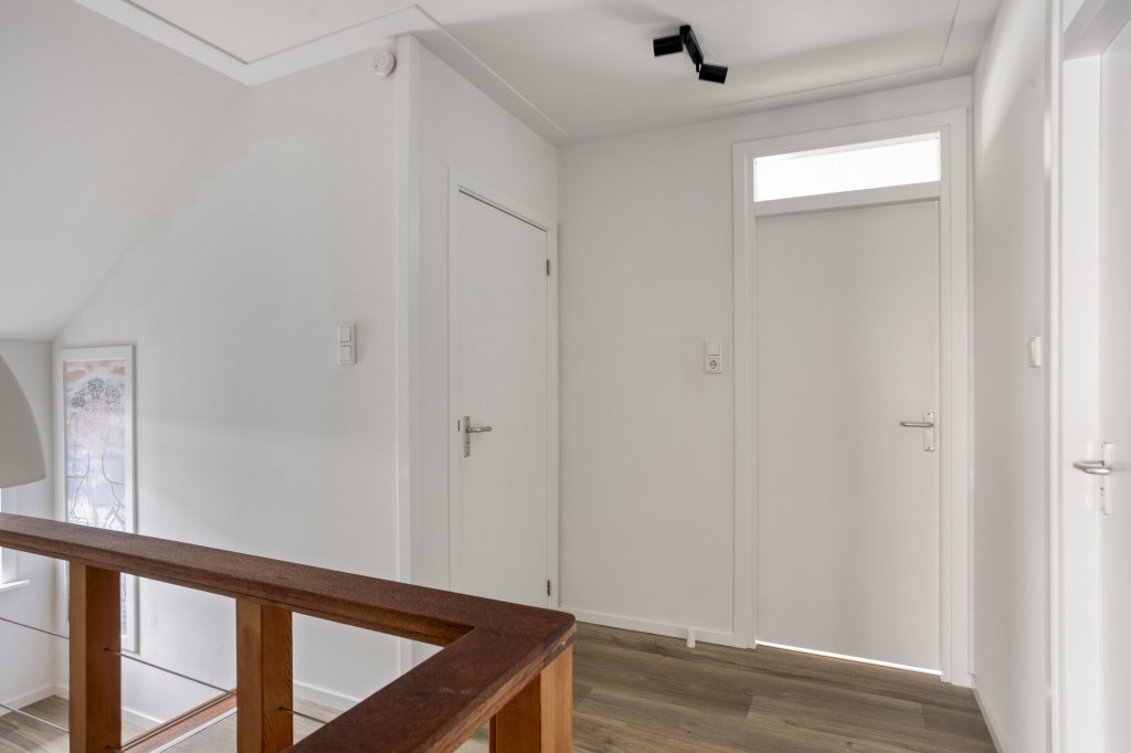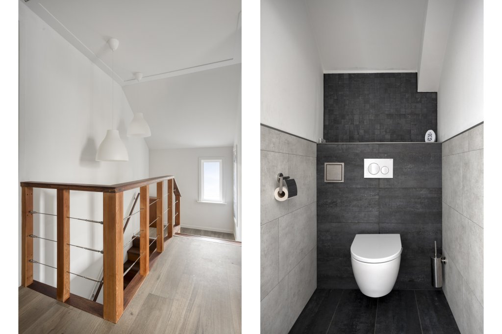 Op de verdiepingen bevinden zich vier goed bemeten slaapkamers en een ruime badkamer. De combinatie van houten elementen, natuurlijke lichtinval en moderne afwerking zorgen voor een warm en comfortabel woongevoel.