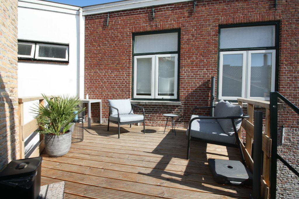 keurige gemeubileerde bovenwoning met open keuken, 3 slaapkamers en dakterras.