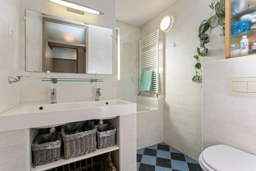 Via een vaste trap (bereikbaar via de woonkamer) komt men op de 1e verdieping. De verdieping beschikt over een badkamer en 3 slaapkamers van respectievelijk groot: ± 11 m², ± 11 m² en ± 5 m². Alle slaapkamers zijn keurig afgewerkt middels een laminaatvloer, strak gestuukte wanden en spuitwerk plafonds. De geheel betegelde badkamer is praktisch ingericht middels een ligbad met douche, dubbel wastafelmeubel, designradiator en toilet.