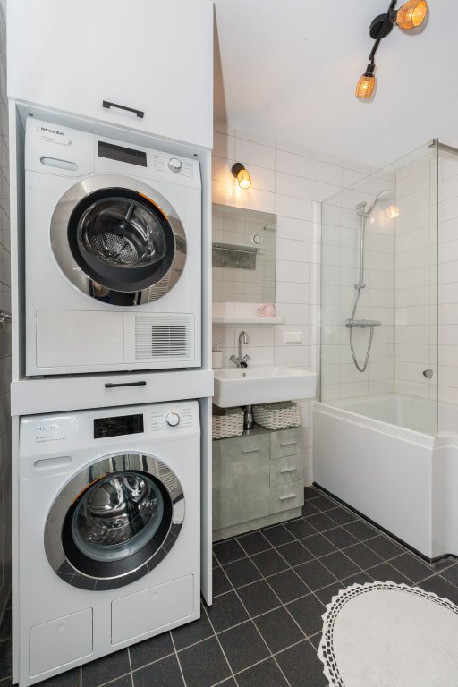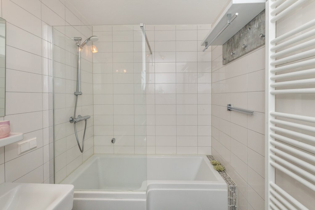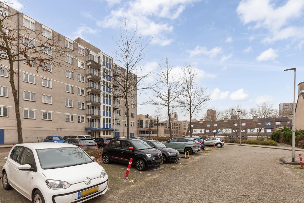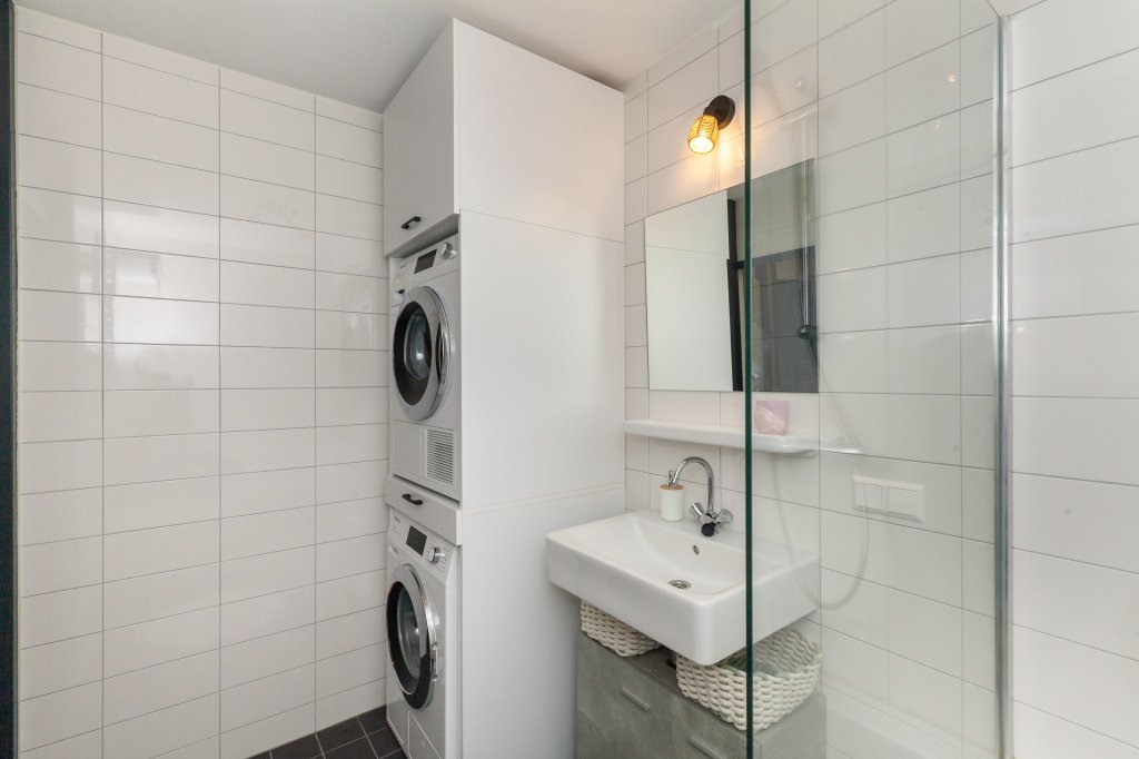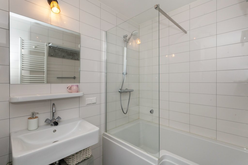 Twee slaapkamers, aan de voorzijde gelegen, waarvan de grote slaapkamer is voorzien van een 2-persoons bed met opbergruimte en de kleinere slaapkamer met een 2-persoonsbed. De geheel betegelde, moderne badkamer is voorzien van een bad waarin ook gedoucht kan worden, wastafelmeubel met spiegelkast en verlichting, handdoekradiator en de opstelplaats voor een wasmachine en droger in een kast. Er is een eigen berging in de onderbouw en een eigen parkeerplaats met beugel op het parkeerterrein.