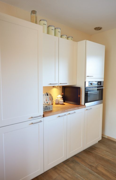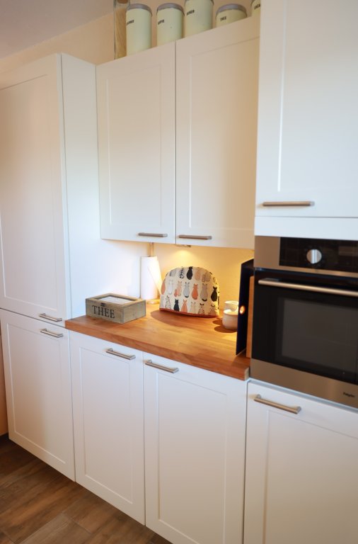 Entreehal met meterkast, toilet en trapopgang. Aan de voorkant bevindt zich de keuken voorzien van inbouw-apparatuur, rvs afzuigschouw, gaskookplaat, combi-oven, koel-vriescombinatie en (nieuwe) vaatwasser. De keuken is in open verbinding met de lichte woonkamer aan de achterzijde, met een plavuizen vloer, voorzien van vloerverwarming, trapkast en deur naar de grote achtertuin met stenen berging.