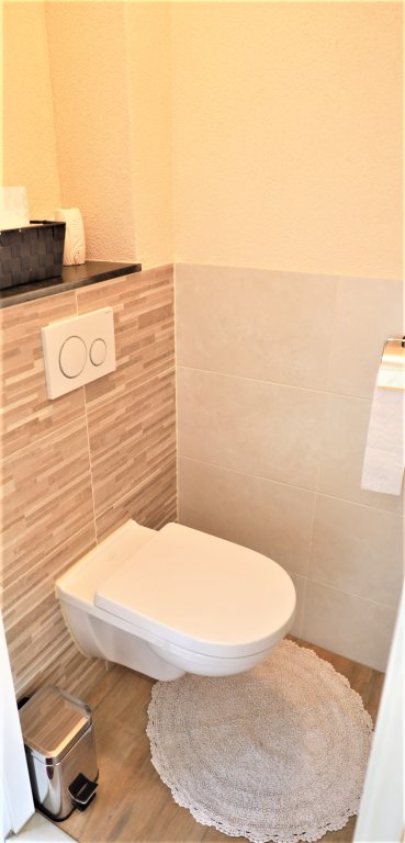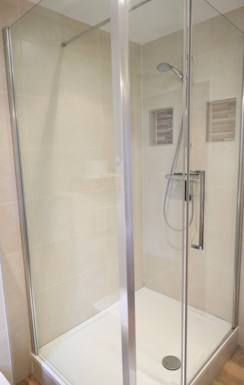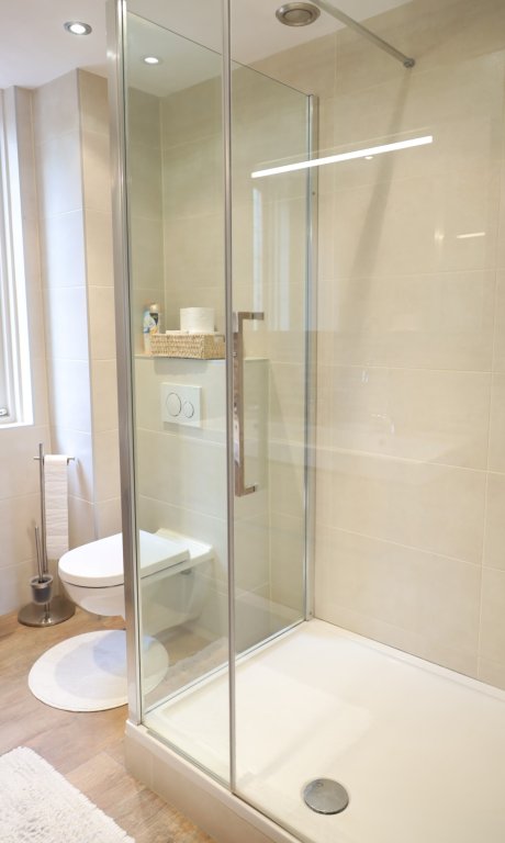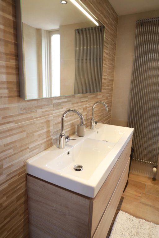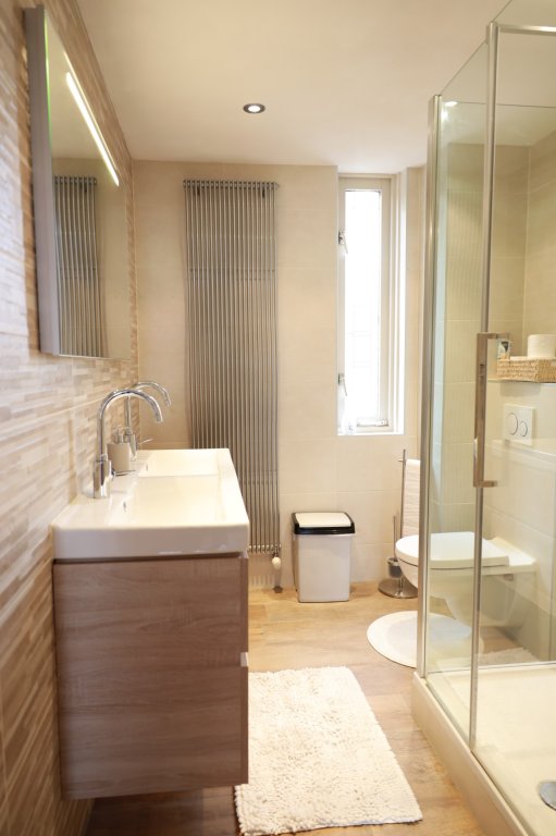 Op de eerste verdieping bevindt zich de overloop, welke toegang biedt tot alle vertrekken. Aan de voorzijde bevindt zich de moderne badkamer met douchecabine, wastafelmeubel met dubbele wastafel en een toilet. Op deze verdieping zijn 3 slaapkamers. De grote slaapkamer bevindt zich aan de voorzijde en heeft een 2-persoonsbed (en nieuw matras) met elektrische lattenbodem en een kledingkast. De tweede slaapkamer bevindt zich aan de achterzijde en heeft een 2-persoonsbed (met nieuw matras, 140x200) met elektrische lattenbodem. De derde kamer aan de achterzijde kan ook gebruikt worden als slaapkamer of bijv. werkkamer.