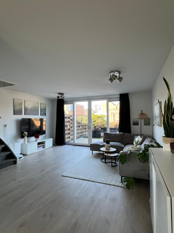 - Woonkamer/keuken, terras op eerste verdieping, 1 slaapkamer op begane grond, 3 slaapkamers op tweede verdieping.