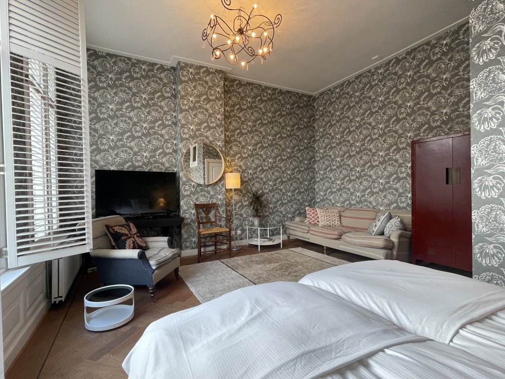 Aan de rand van de Zwolse binnenstad, net buiten de stadsgracht en vlakbij het station, staat dit karakteristieke herenhuis. Op de eerste verdieping van dit prachtige pand is per direct een luxe, riant (100m2) appartement te huur. De eerste etage is reeds gerenoveerd en sfeervol afgewerkt en volledig gemeubileerd, dus je kunt er zo in! Een unieke kans om op een toplocatie met alle belangrijke voorzieningen op een steenworp afstand te wonen, in een oud pand met karakteristieke details maar luxe appartement met modern comfort.