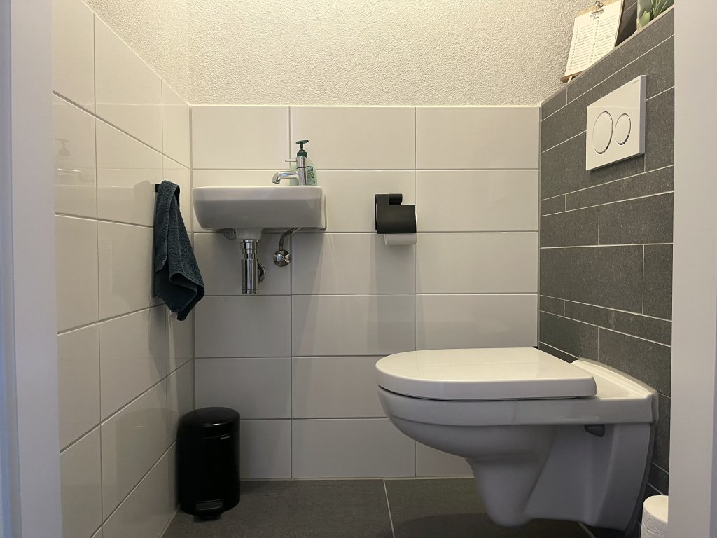 Entree, hal met modern toilet, trapopgang en toegang tot de woonkamer. Lichte, royale tuingerichte woonkamer met trapkast en openslaande deuren naar de tuin. De moderne keuken is voorzien van een koelkast, diepvries, dubbele combi-magnetron, inductiekookplaat met afzuigkap en een vaatwasser.