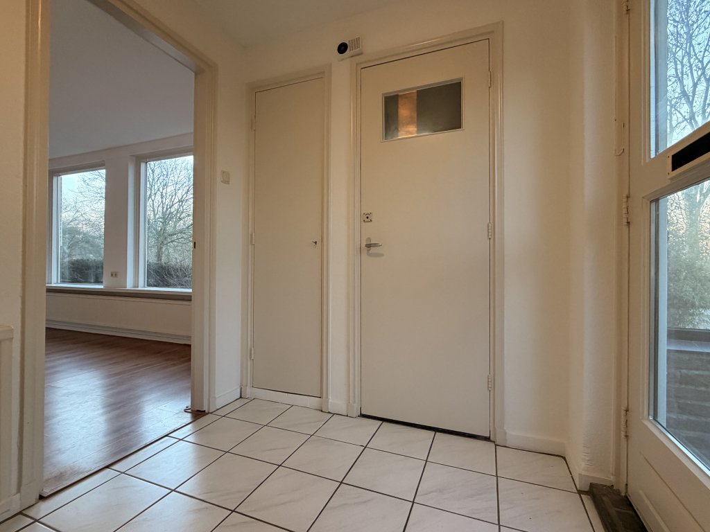 Entree, hal met toilet. Woonkamer met veel lichtinval. Keuken met eetgedeelte en toegang tot de tuin.