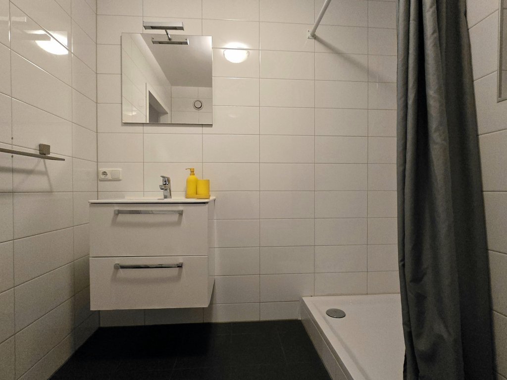 Entree, open hal. Woonkamer met hoge plafonds en veel lichtinval door de hoge plafonds. Moderne open keuken voorzien van inductiekookplaat met afzuigkap, vaatwasser, combi-oven en koelkast/diepvriezer. Slaapgedeelte, vanuit het slaapgedeelte is toegang tot de moderne badkamer uitgerust met wastafelmeubel, toilet en douche.