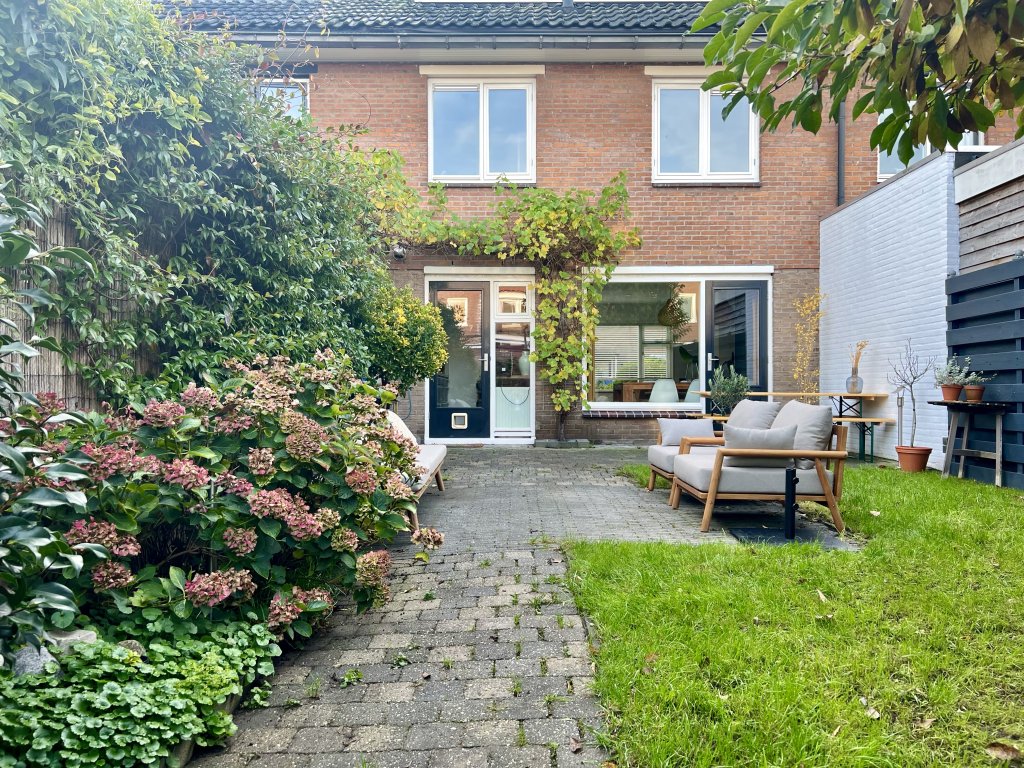 Entree, hal met toilet en trapopgang. Royale woonkamer met sfeerhaard, nette open keuken voorzien van gaskookplaat met afzuigkap, vaatwasser, koelkast en combi-oven. Vanuit de keuken is toegang tot de heerlijke achtertuin met terras, groen, schuurtje (met vriezer) en achterom.